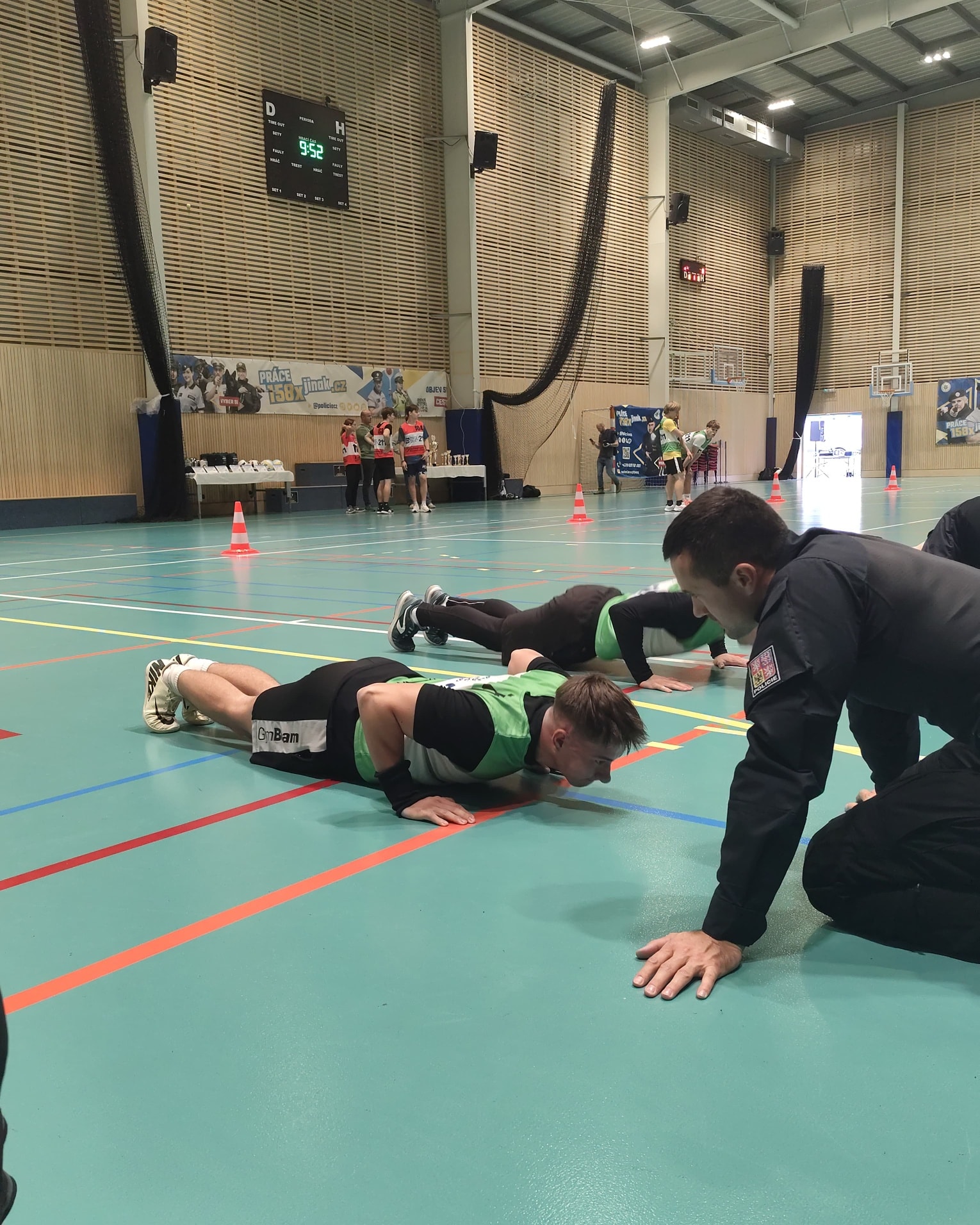 Přesně týden od postupu z krajského kola se dnes konalo republikové finále policejní soutěže "Máš na to!" v Kojetíně na Olomoucku. Náš tým ve složení Natálie Prokešová, Filip Ludvík a Tomáš Novotný obsadil ve špičkové konkurenci 9. místo z 32 zúčastněných týmů. Kromě zlepšených výkonů v jednotlivých disciplínách (kliky, celomotorický test, člunkový běh, běh na 1000m) je čekal i kybernetický test a i policejní instruktoři jakožto rozhodčí byli nekompromisní při striktním dodržování techniky cviků. Doprovodným programem soutěže byla ukázka policejní techniky včetně služebního Ferrari a policistů na koních. Vítězný tým z policejní střední školy z Holešova získal putovní pohár přímo od policejního prezidenta Martina Vondráška.