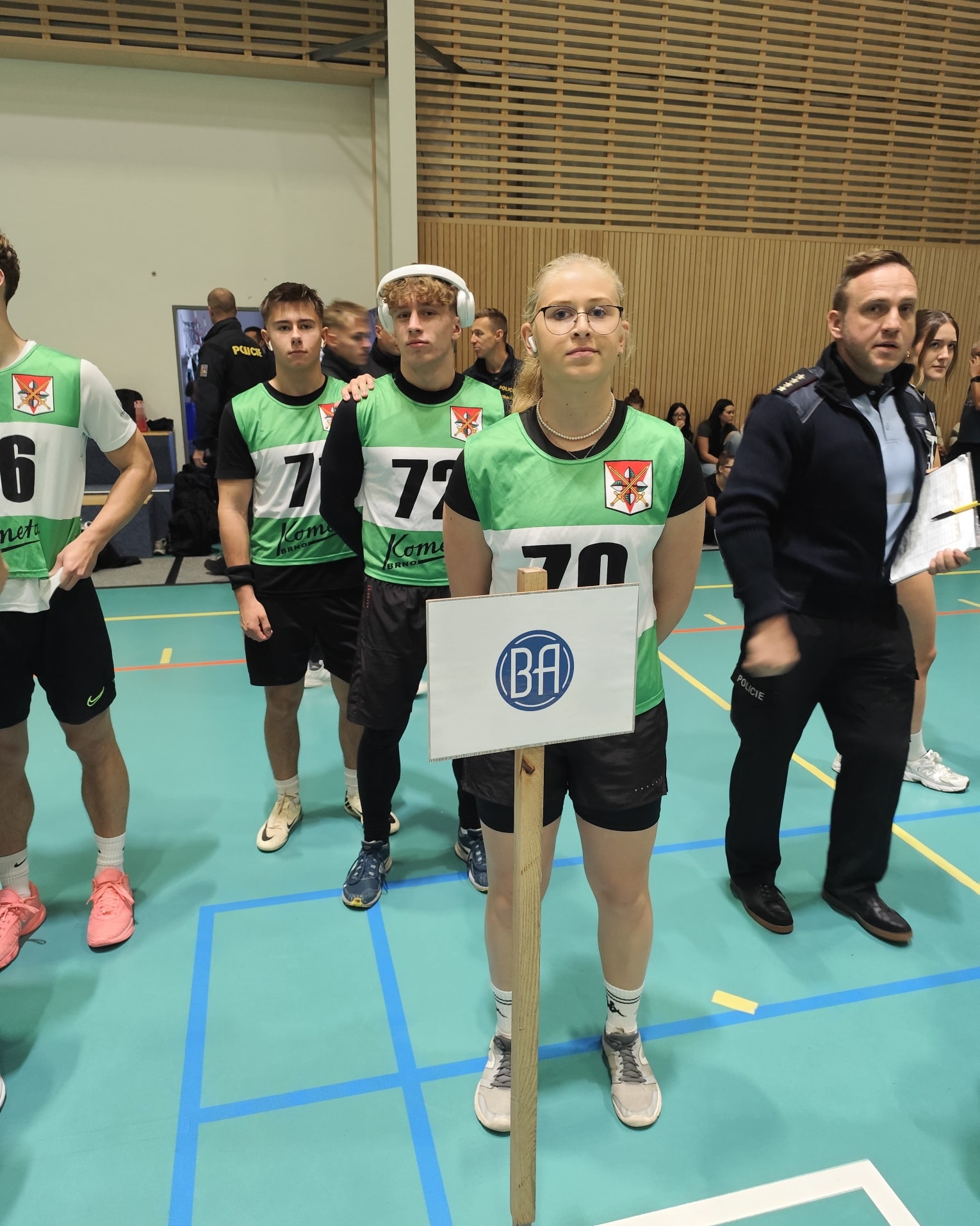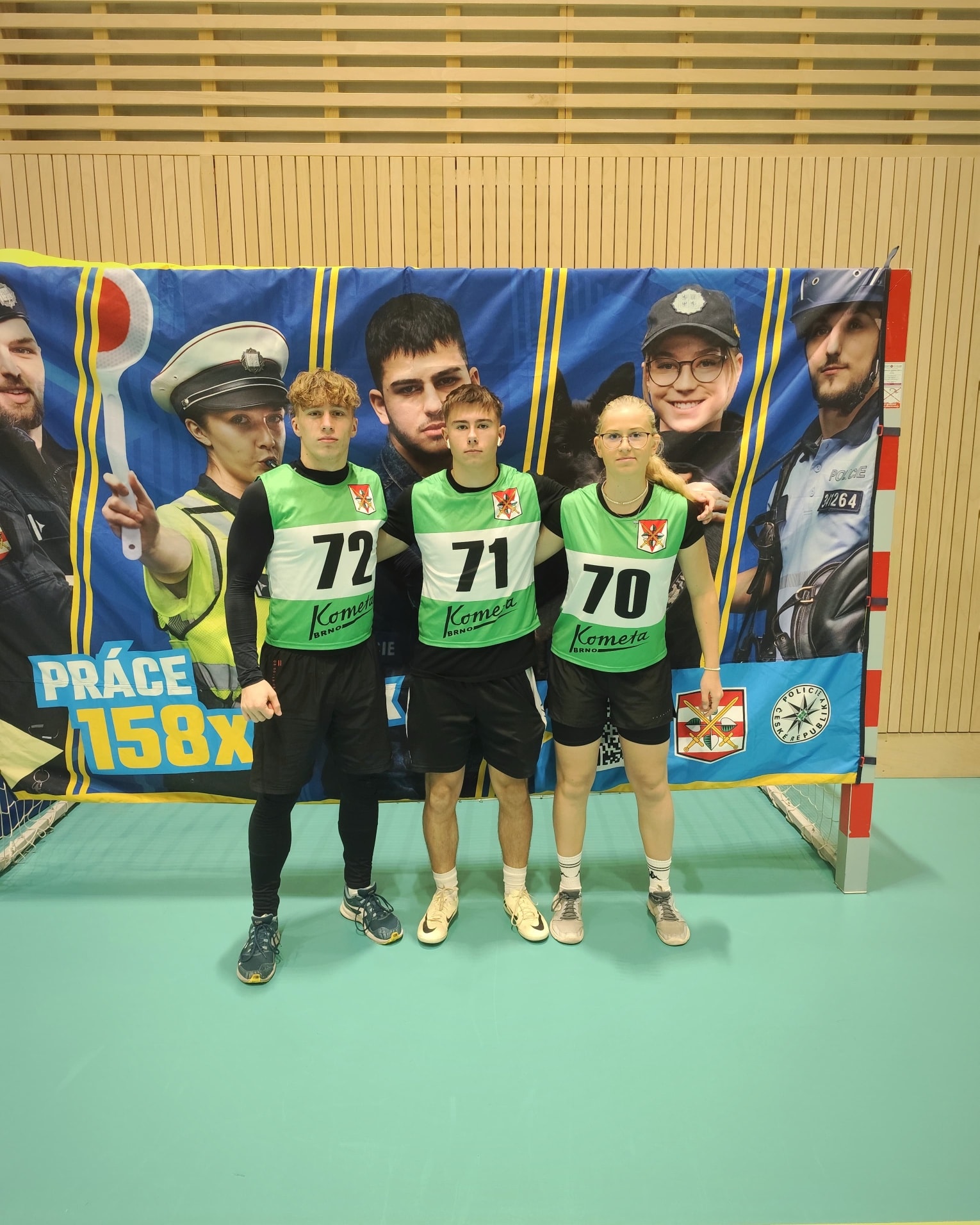 Přesně týden od postupu z krajského kola se dnes konalo republikové finále policejní soutěže "Máš na to!" v Kojetíně na Olomoucku. Náš tým ve složení Natálie Prokešová, Filip Ludvík a Tomáš Novotný obsadil ve špičkové konkurenci 9. místo z 32 zúčastněných týmů. Kromě zlepšených výkonů v jednotlivých disciplínách (kliky, celomotorický test, člunkový běh, běh na 1000m) je čekal i kybernetický test a i policejní instruktoři jakožto rozhodčí byli nekompromisní při striktním dodržování techniky cviků. Doprovodným programem soutěže byla ukázka policejní techniky včetně služebního Ferrari a policistů na koních. Vítězný tým z policejní střední školy z Holešova získal putovní pohár přímo od policejního prezidenta Martina Vondráška.